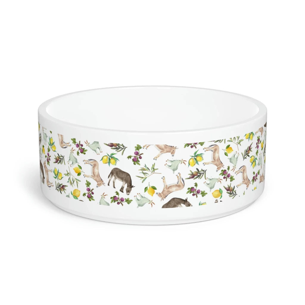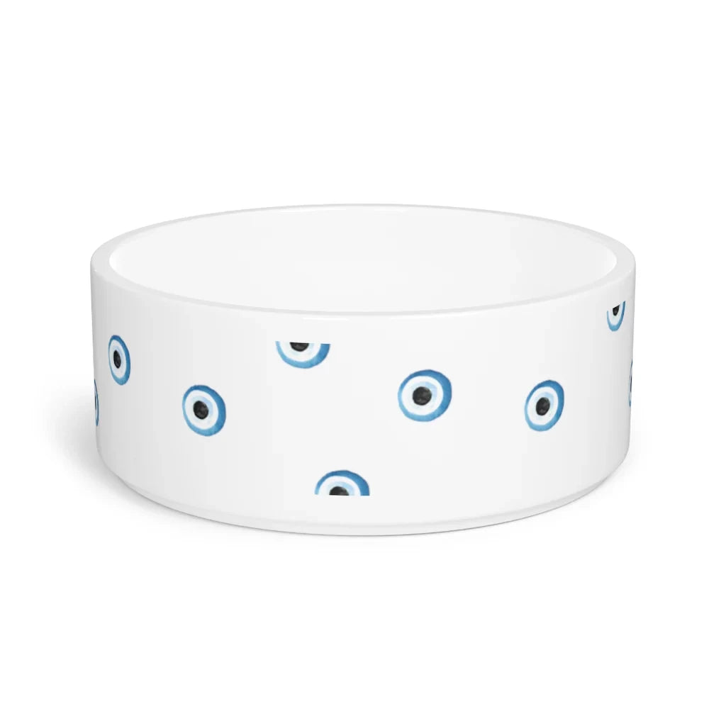 Ceramic bowl measure 6" in diameter, 2.25" in height and 19" in circumference with pattern across front only. Perfect for cats or smaller breed dogs! 🧿💙