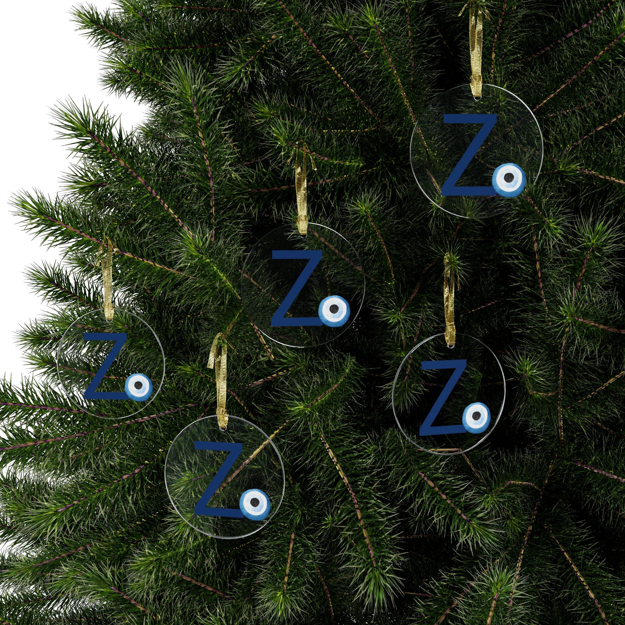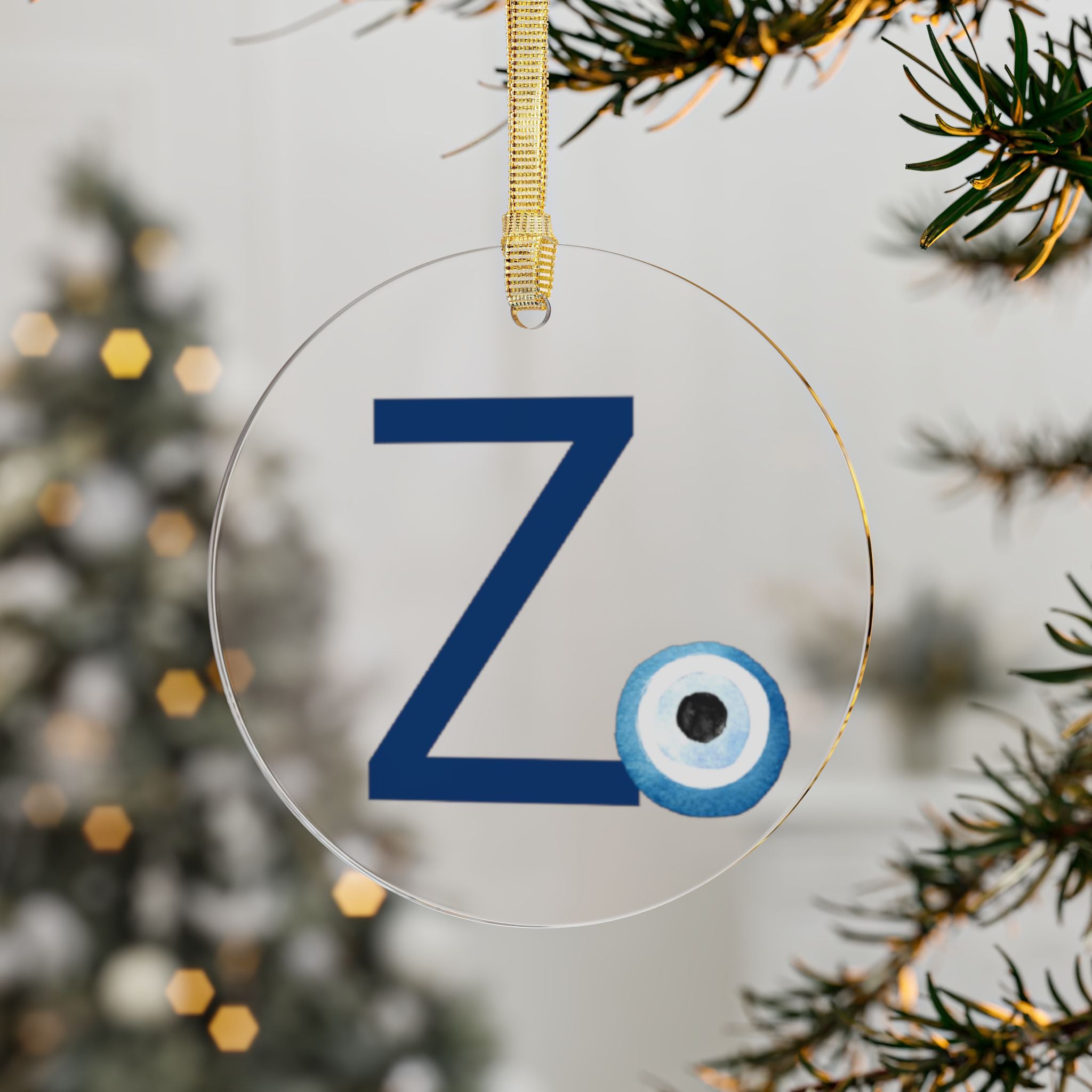Greek Monogram Acrylic Ornament: Z-Zeta Blue Letter with Watercolor Mati Design